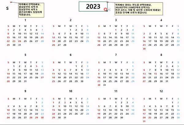 2022.11.17 - [엑셀/엑셀양식] - 2023년 달력 엑셀 양식 파일 무료 다운로드 - 만년 달력